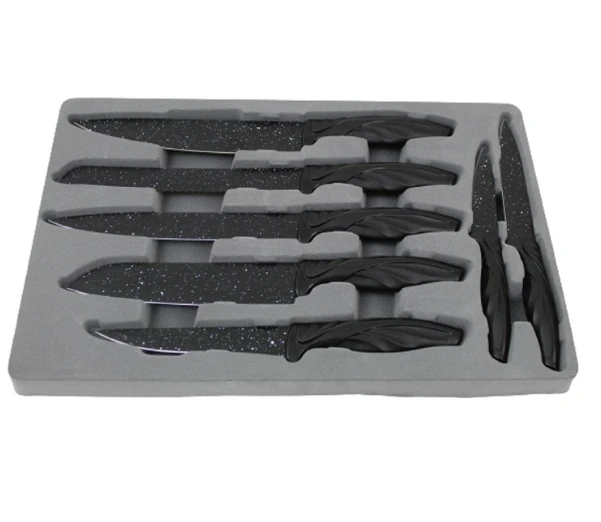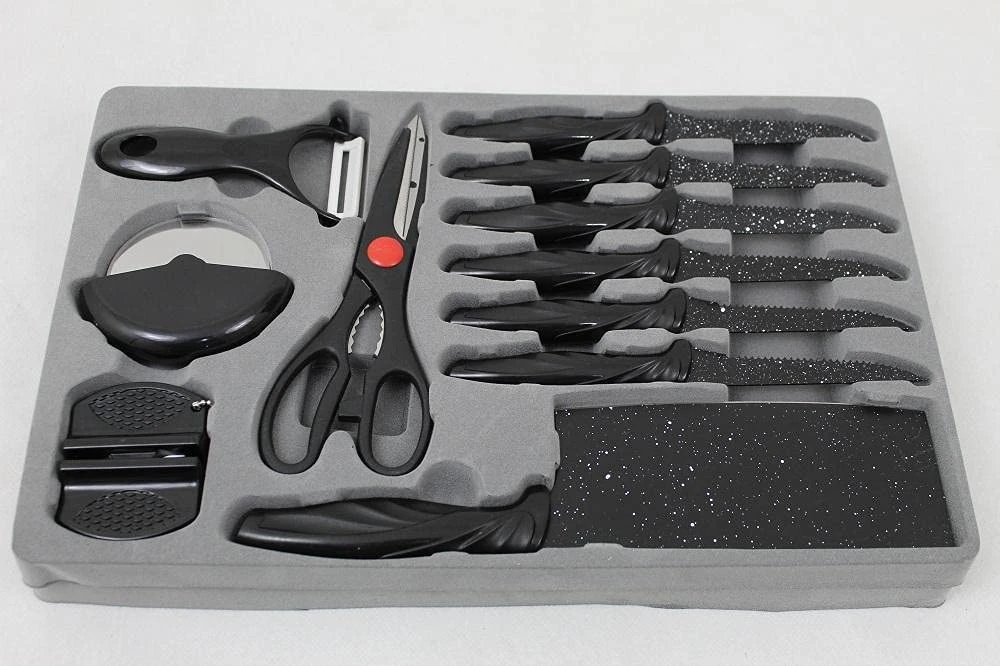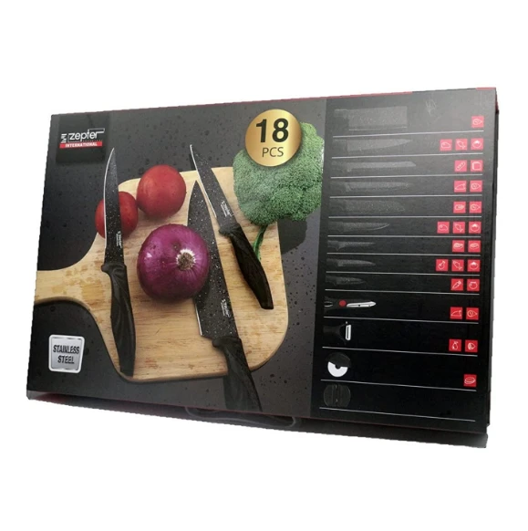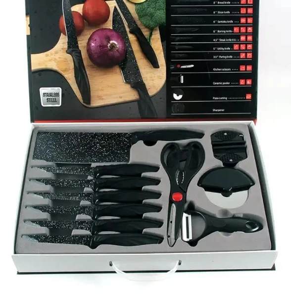 طقم سكاكين جرانيت مكون من 18 سكينة تقشير وبأشكال مختلفة، لأغراضك المتنوعة في المطبخ سواء تقطيع الفواكه والتوابل أو تقطيع اللحوم والأسماك والخبز والحلويات، كما أنه يحتوي على طقم وقطاعة خفيفة ومعقم سكاكين ومقشرة. لا تفوت الفرصة واحصل على طقم سكاكين جرانيت بسعر مغري جدا الصور حقيقية وأقل سعر الكمية المتوفرة محدوده 🔥🔥🔥 اطلبه الآن أو ابعتلنا رسالة